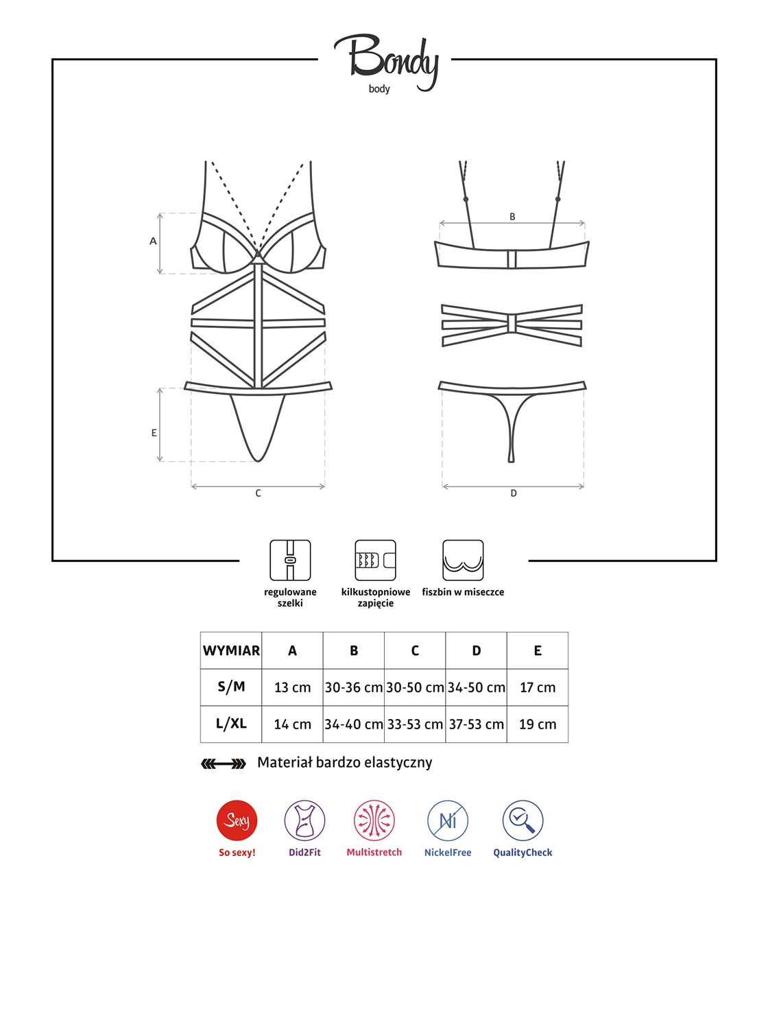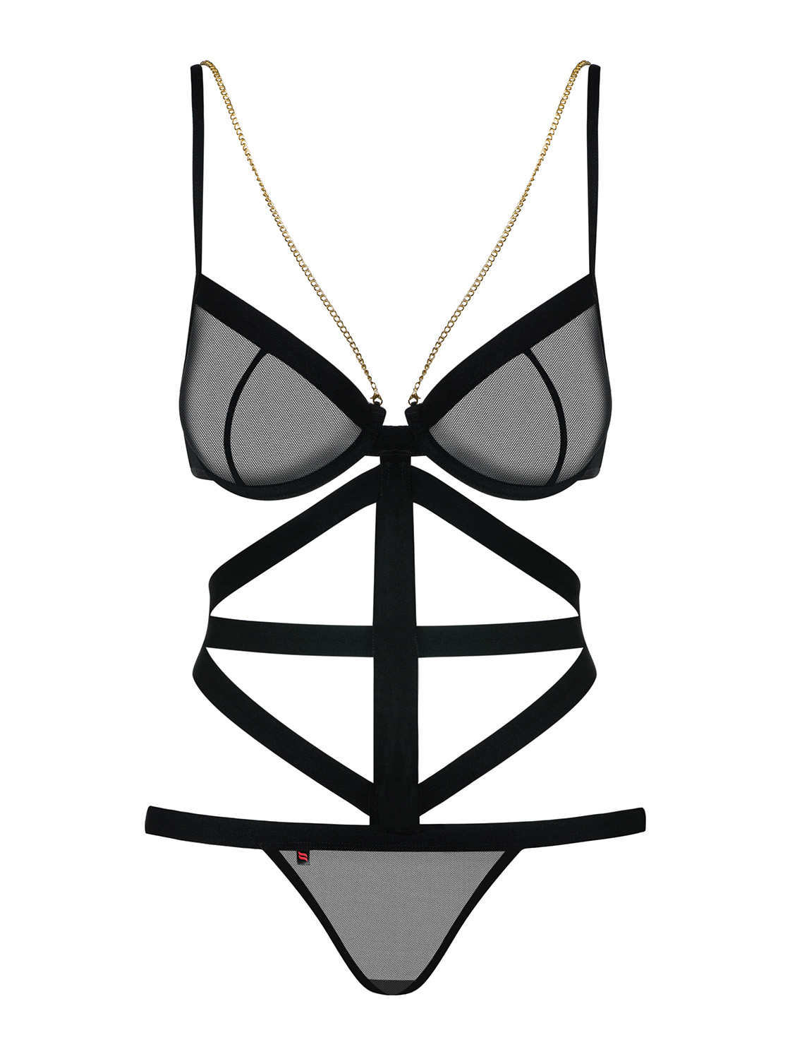 Teddy Bondy von Obsessive Figurbetonender Body mit einem zarten Bänderdesign und Bügel-Cups aus transparentem Material. Mit verstellbaren Trägern für eine hervorragende Passform. Breite und elastische Bänder im Taillen- und Bauchbereich sowie nickelfreie Schmuckketten.
