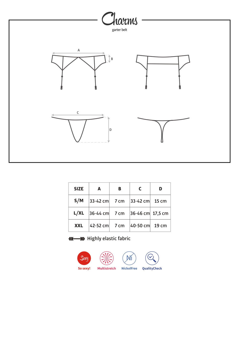 Fantastischer, sehr eleganter Strumpfbandgürtel aus durchscheinendem Material mit verstellbaren Strapshaltern. Der Vorderteil ist mit Spitze und einem Schmuckelement verziert. Passender String enthalten.
