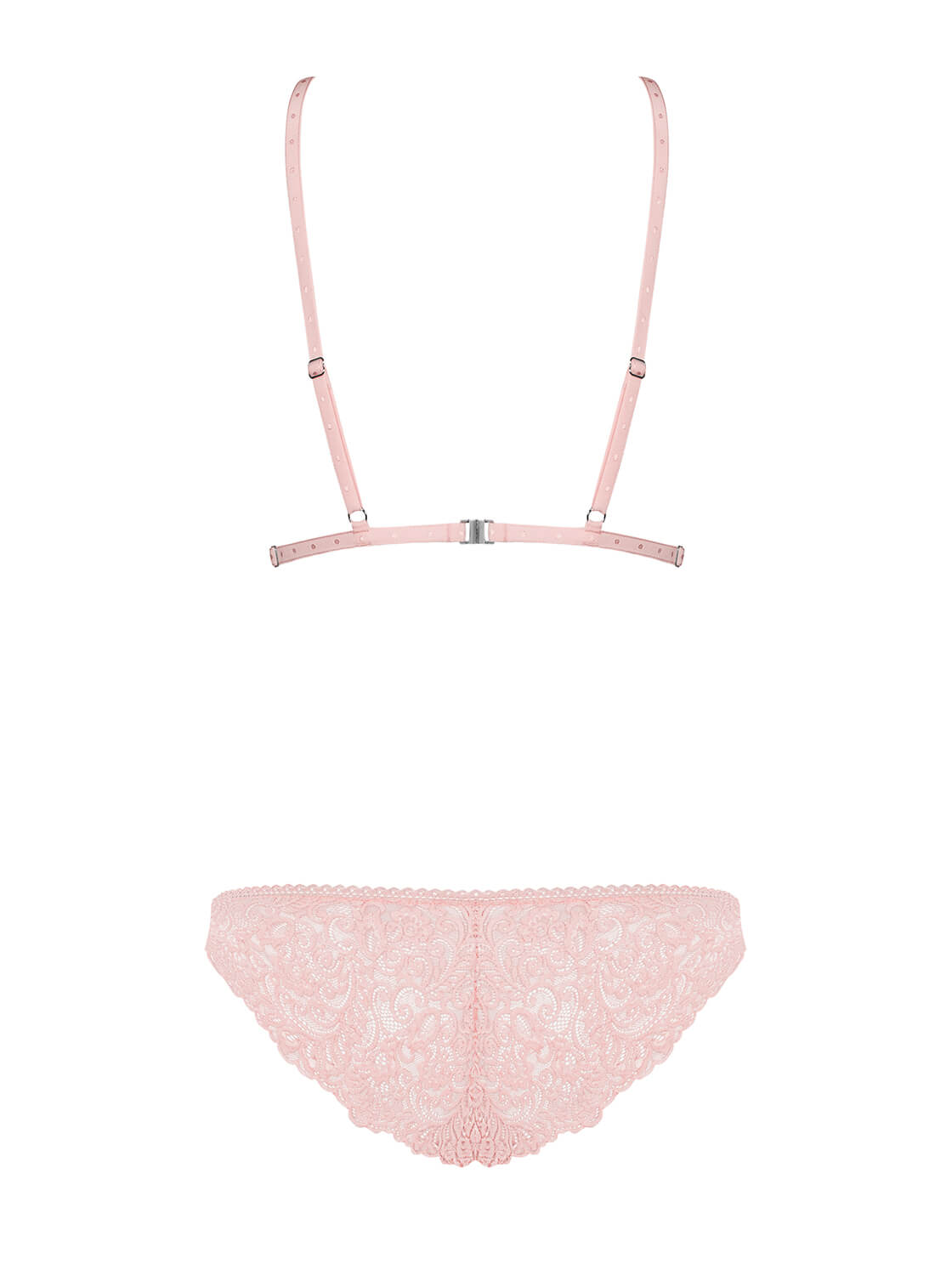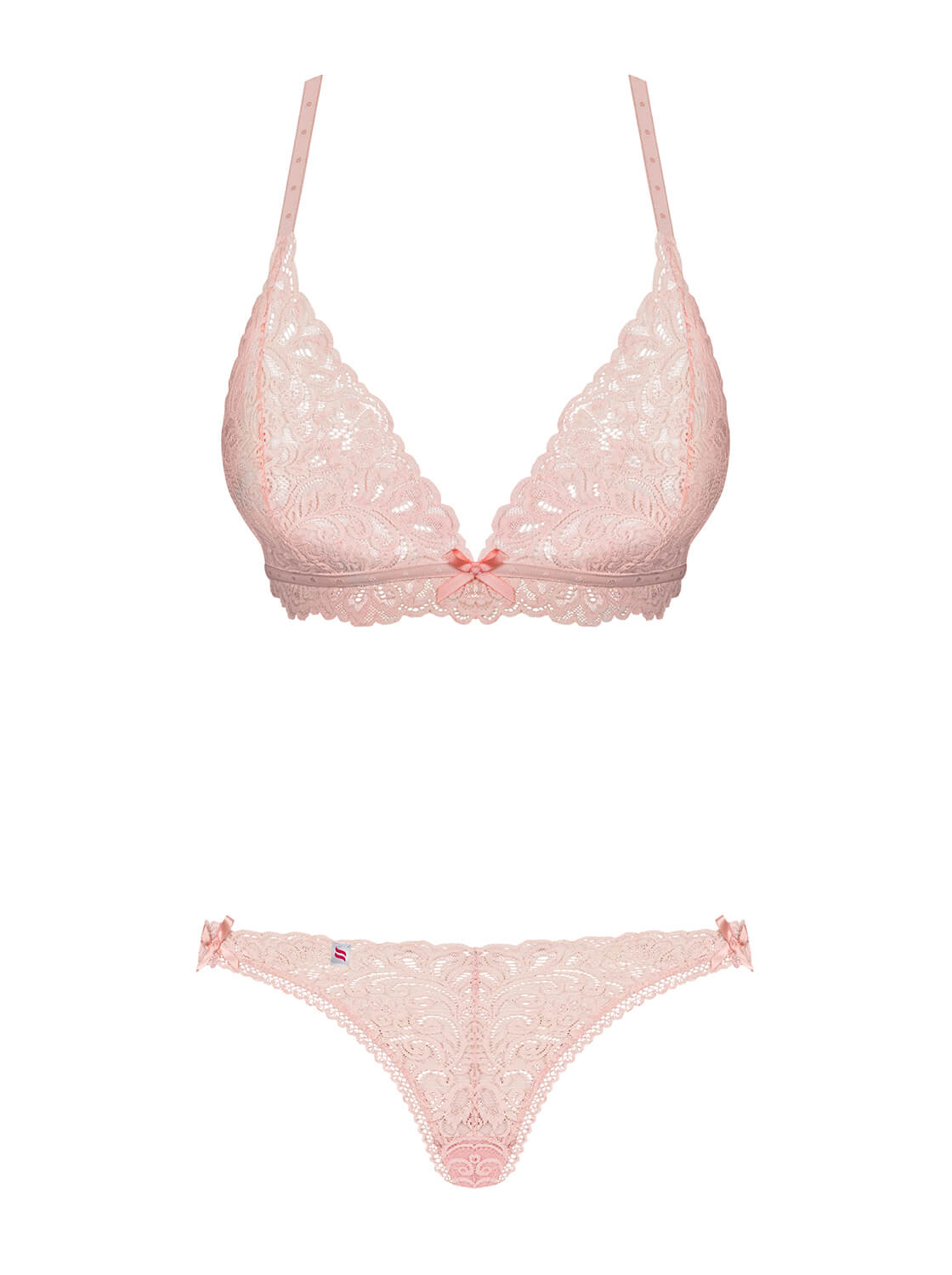 Charmantes, rosafarbenes Set aus weicher und elastischer Multistretch-Spitze. Ein BH mit bequemen Softcups und verstellbaren Trägern sowie einem praktischen Rückenverschluss für eine perfekte Passform. Das passende Spitzenhöschen mit ComfyCut-Schnitt betont Beine und Po. Die süßen Schleifendetails setzen einen femininen Akzent.