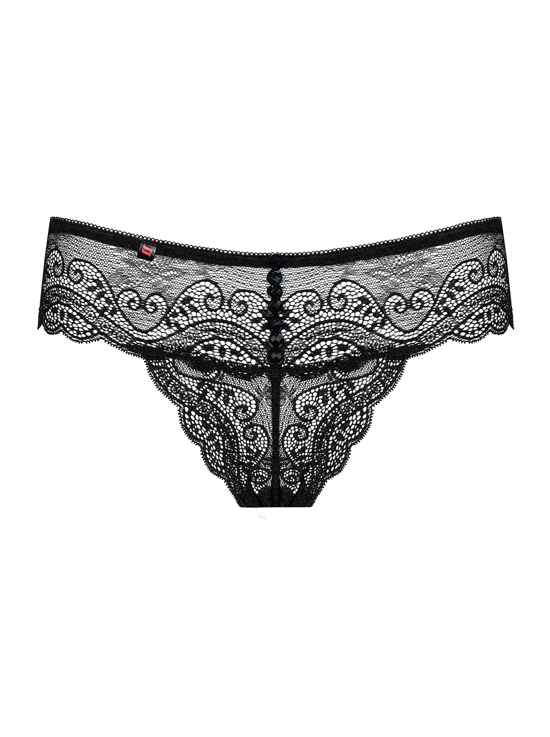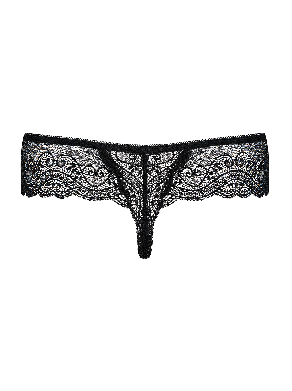 Thong Miamor von Obsessive Eleganter Spitzen-String mit glänzenden Steinen und Nähten auf der Rückseite, die den Po perfekt in Szene setzen! Schönes und elastisches Material.