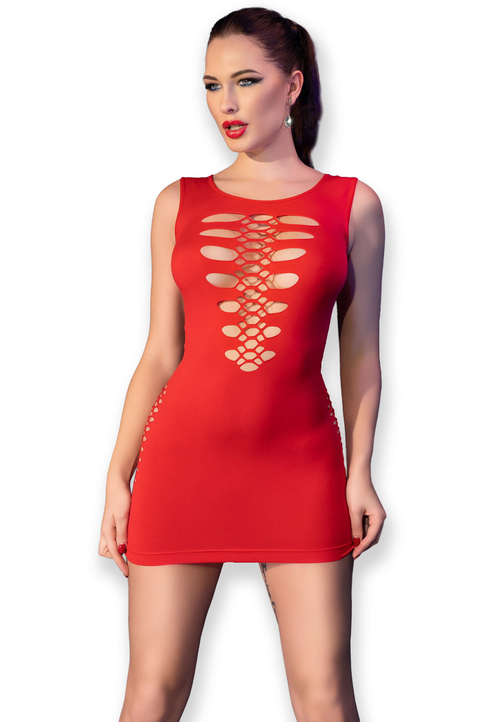 Nahtloses Minikleid CR4622 rot von Chilirose Elastisches, ärmelloses Minikleid aus nahtlosem und weichem Material in rot mit sexy Schlitzen. Es passt sich perfekt dem Körper an und kann auf zwei Arten getragen werden.