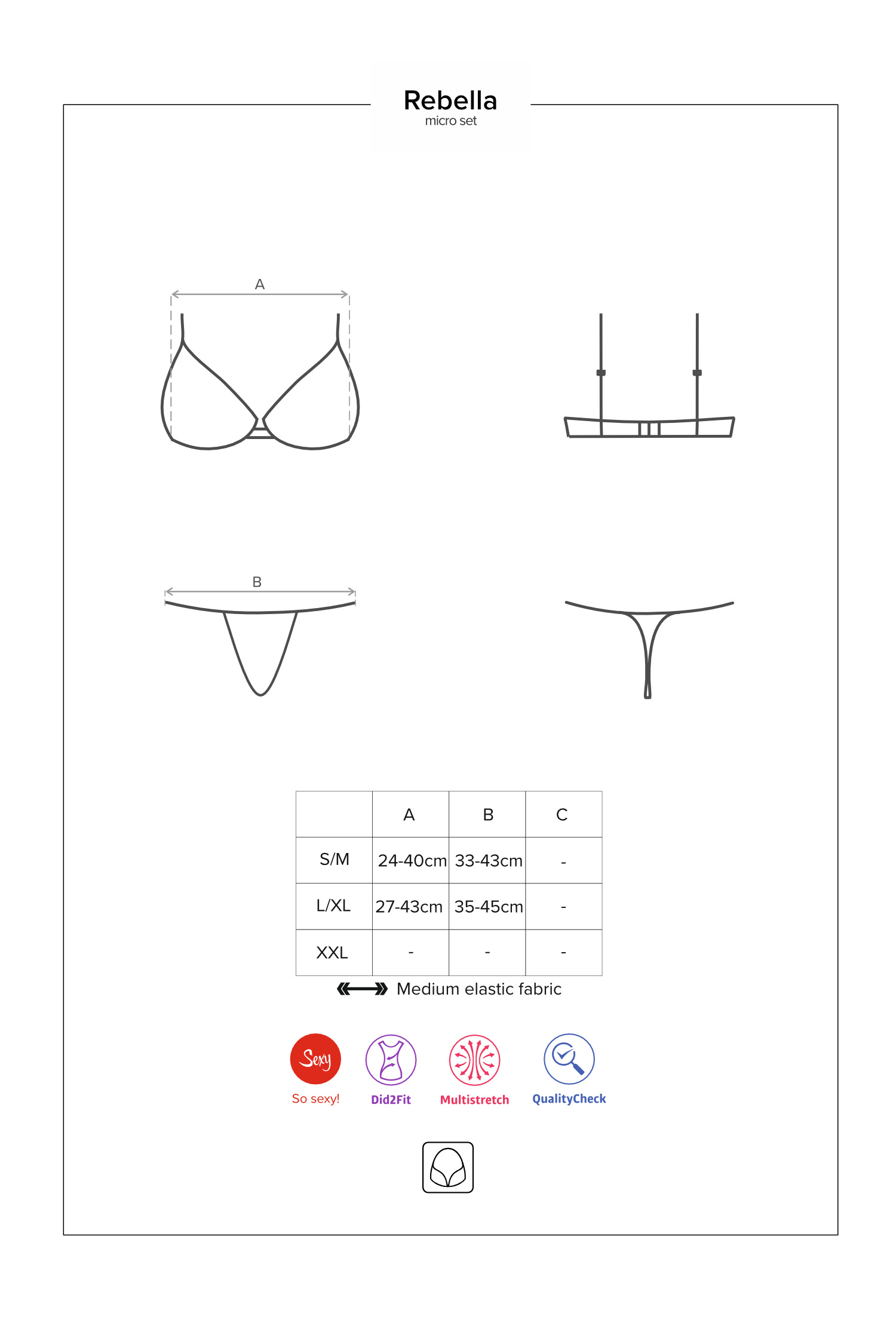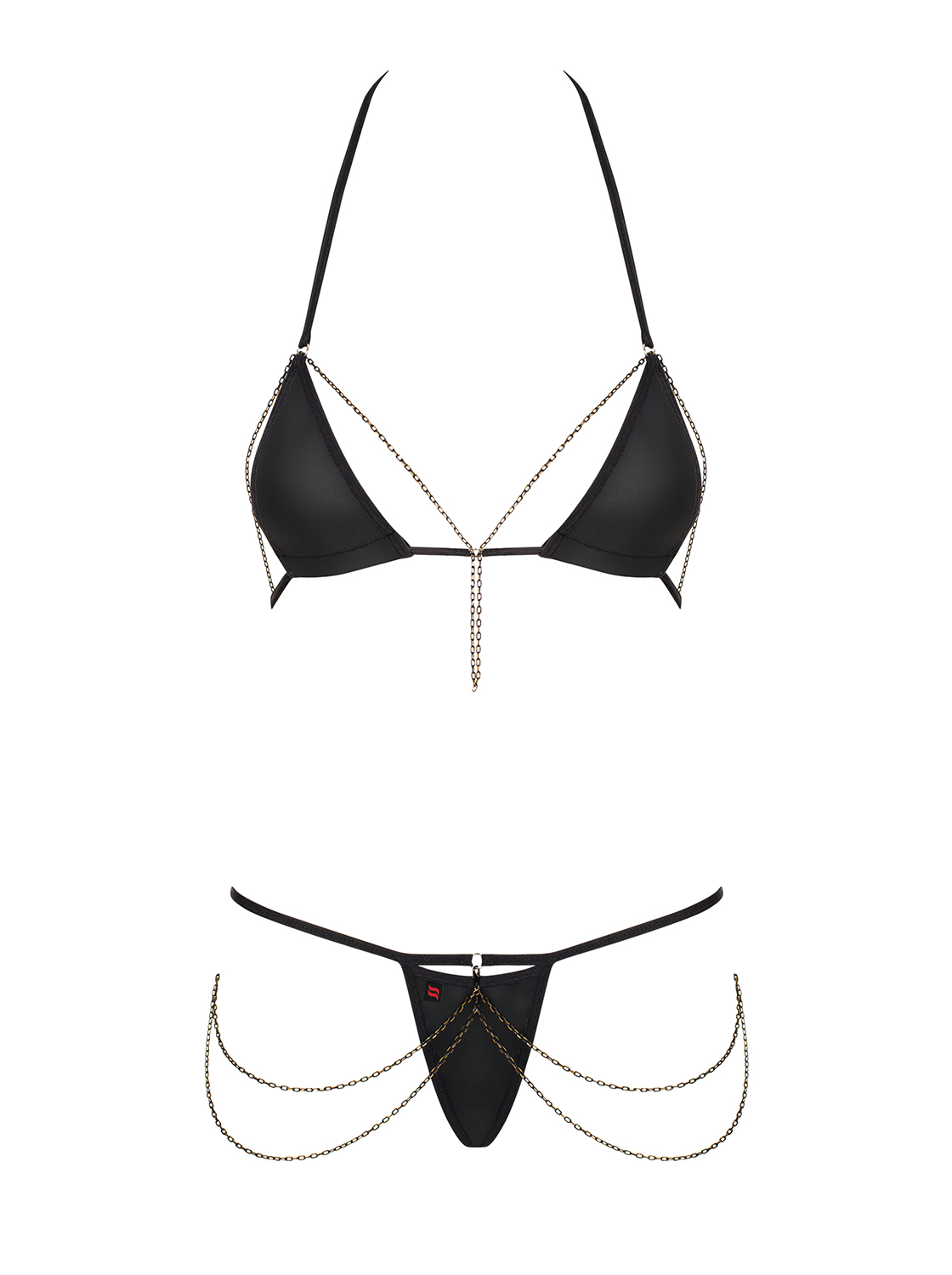Schwarzes 2er-Set Redella von Obsessive Wunderschönes Dessous-Set aus elastischem Material. Bestehend aus einem verstellbaren Neckholder-BH, einem String und abnehmbaren Zierketten.