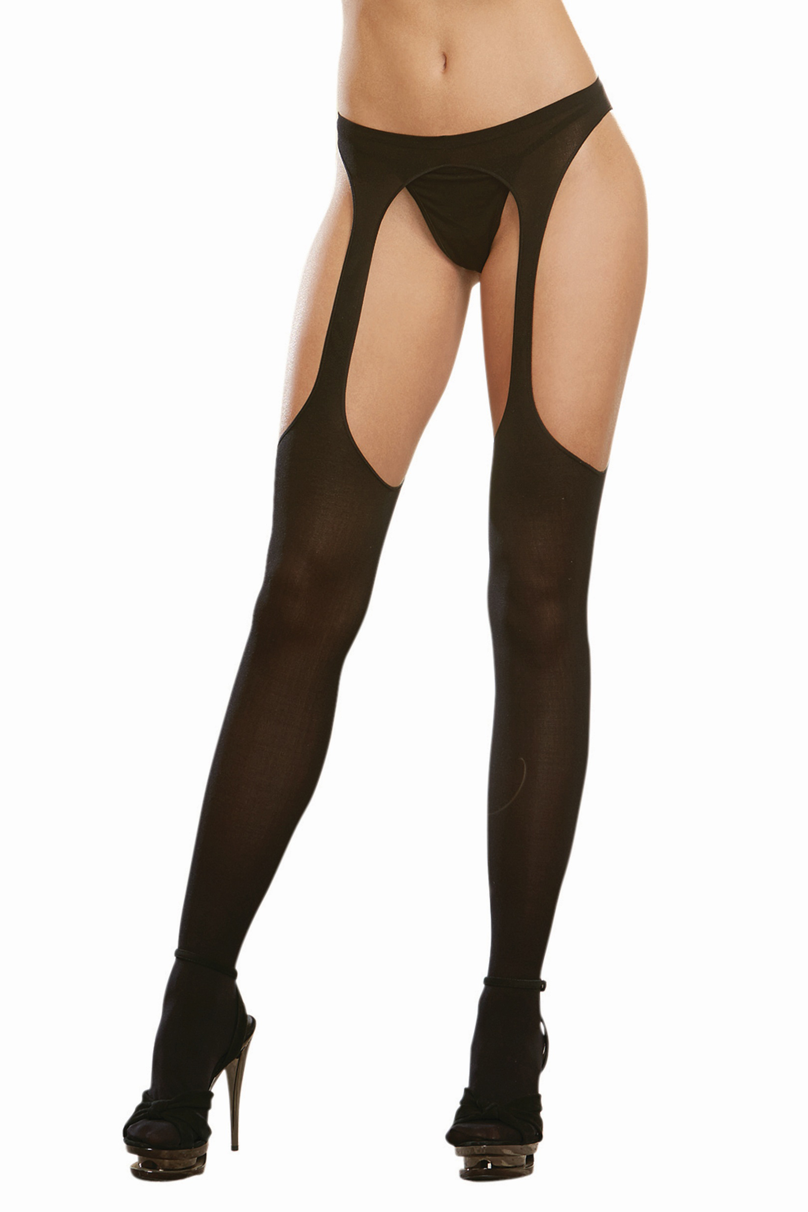Straps Set - Black Diamond Style 0250 black Halbtransparenter Strumpfhaltergürtel mit angeschlossenen Strümpfen. Der abgebildete String ist nicht im Lieferumfang enthalten.